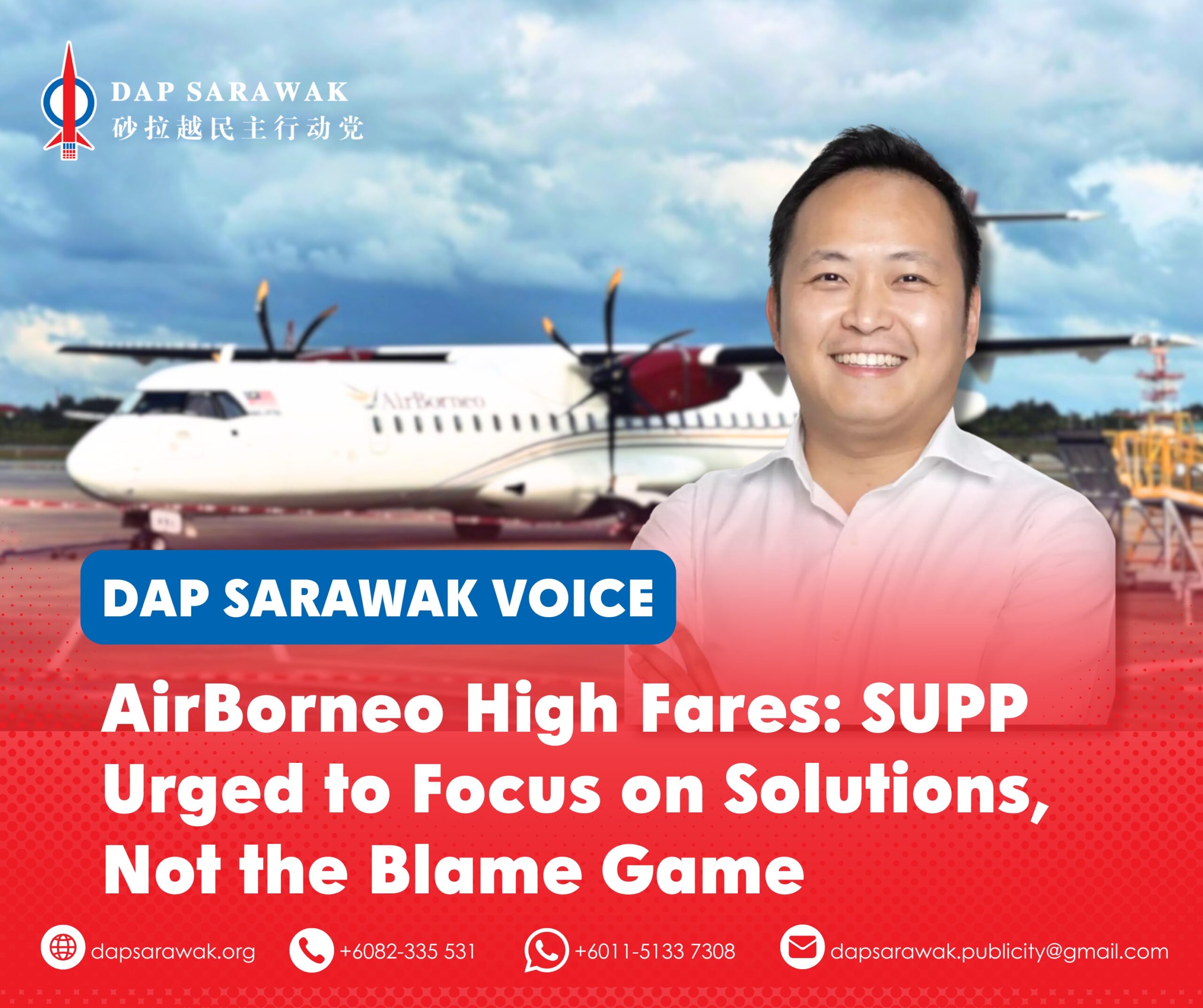 DAP Sarawak is not against reducing airfares. Instead, DAP Sarawak has consistently acknowledged the need to reduce airfares.